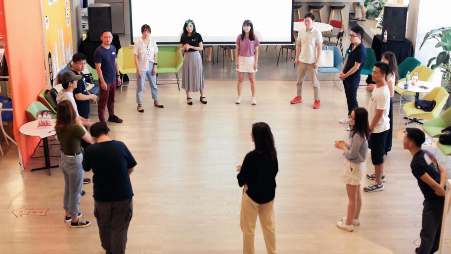 “沸騰演技π”版塊旨在通過互動(dòng)、體驗(yàn)的方式,讓觀眾從旁觀者的角色,轉(zhuǎn)變?yōu)閼騽〉膮⑴c者,從而觀照自我??阵w邀請(qǐng)燃劇廠、串串喜劇、甸甸巴士劇團(tuán)通過表演體驗(yàn)沙龍、脫口秀現(xiàn)場(chǎng)互動(dòng)、即興戲劇互動(dòng),聯(lián)接觀眾與藝人。戲劇不僅是表演者的場(chǎng)子,在這里,空體都是演技派。