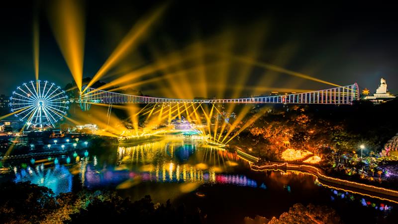 2021年是農(nóng)歷丑牛年,隱賢山莊特別推出了“與牛共舞”和小丑互動(dòng)節(jié)目,景區(qū)選取了傳統(tǒng)文化里具有勤勞實(shí)干品質(zhì)的“?!睘殚_年使者,讓大家與可愛的萌牛共舞,再配上幽默搞笑的小丑與游客互動(dòng),貼合“丑牛”的新年主題?!澳Щ每兹腹取笔且钥兹腹鹊亩嗖熟o謐的環(huán)境為背景,由國內(nèi)知名魔術(shù)師現(xiàn)場表演近景魔術(shù),比熒幕觀賞更有逼真和神秘的效果。“風(fēng)情加勒比”將在加勒比民族舞臺(tái)上演云南佤族特色舞蹈,讓東莞游客不出遠(yuǎn)門就能體驗(yàn)到異域風(fēng)情?!拌仓埂笔窃陔[賢山莊的網(wǎng)紅橋——3D玻璃橋演繹瀑布燈光秀,空中七彩燈光閃耀,與隱賢湖水交相輝映,猶如置身唯美的天上街市。“鵲橋浪漫”是隱賢山莊專門為有情人預(yù)備的一份節(jié)日禮物,在喜鵲的簇?fù)砗鸵魳返陌樽嘞?,他們從鵲橋的兩端緩緩走向?qū)Ψ剑瑢⒅腥A民族流傳千年的牛女相會(huì)的愛情故事由神話變成現(xiàn)實(shí)。