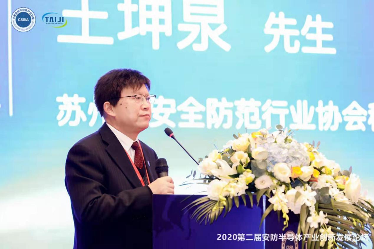 本屆論壇聯(lián)合國內(nèi)外安防與半導(dǎo)體主流企業(yè),推動中國安防半導(dǎo)體產(chǎn)業(yè)持續(xù)有序規(guī)范發(fā)展。全國安防協(xié)會合作互助聯(lián)盟首席顧問、公安部裝財局原副局長陶軍生,法國歐洲科學(xué)院榮譽院士、全國安防協(xié)會合作互助聯(lián)盟理事長、中國安防半導(dǎo)體產(chǎn)業(yè)聯(lián)盟主席楊金才,蘇州工業(yè)園區(qū)高端制造與國際貿(mào)易區(qū)產(chǎn)業(yè)發(fā)展局局長楊熠,蘇州市安全技術(shù)防范行業(yè)協(xié)會秘書長王坤泉,深圳市芯片行業(yè)協(xié)會秘書長吳征,臺灣資深半導(dǎo)體專家、中國安防半導(dǎo)體產(chǎn)業(yè)聯(lián)盟專家顧問、臺灣亞太高科技產(chǎn)業(yè)發(fā)展促進(jìn)會副會長馮明憲,太極半導(dǎo)體(蘇州)有限公司董事長孫鴻偉等領(lǐng)導(dǎo)及嘉賓出席此次論壇。