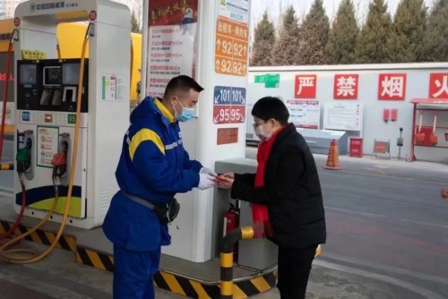 在內(nèi)蒙古興安盟,團油員工于治浩沖上一線為大家送溫暖,油站值班員工想給他拍張照片,卻被他婉言謝絕了,原因是“要給更多的油站朋友送溫暖油”,一刻都不能耽誤。