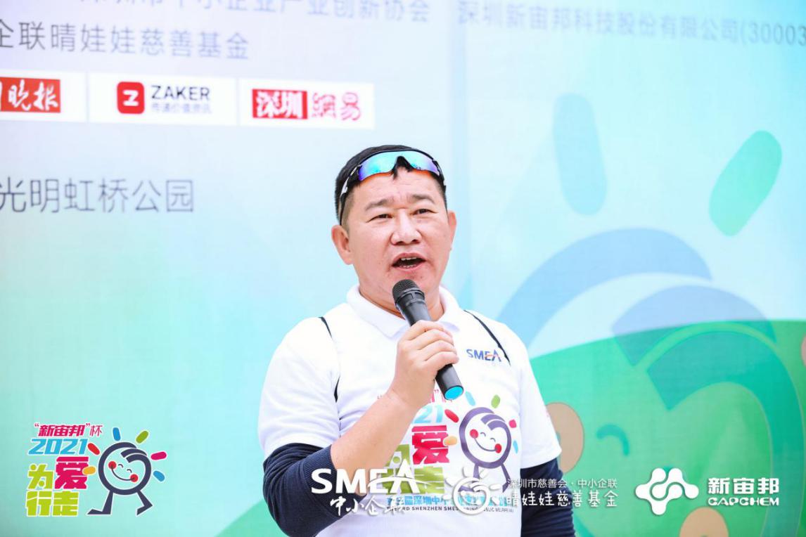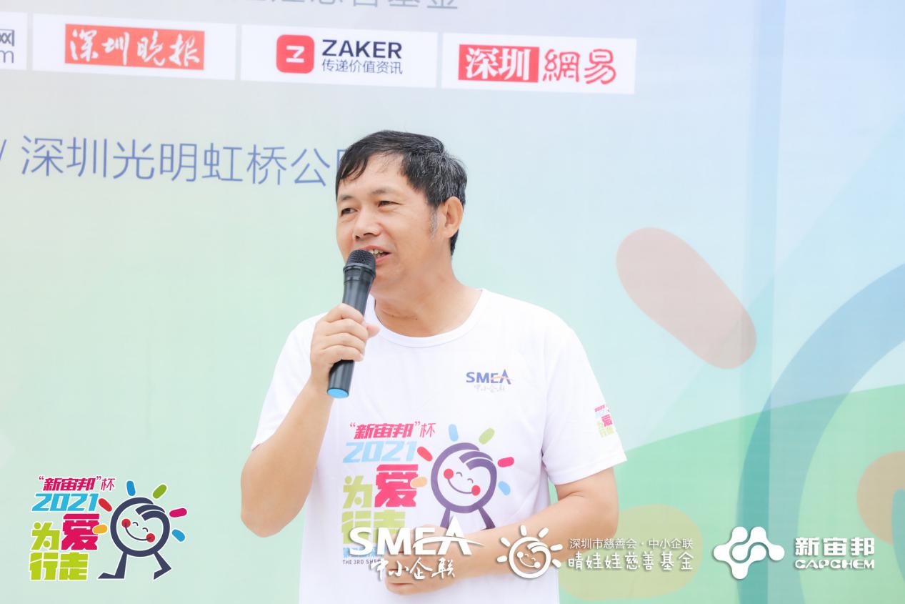 深圳中小企聯(lián)會長、深圳市杰科電子有限公司董事長黃榮添為開幕式致辭。他表示:“感謝新宙邦對本次慈善公益徒步活動做出的貢獻(xiàn),以及今天參加此次活動的愛心企業(yè)家、愛心人士們的大力支持,我代表深圳中小企聯(lián)感謝大家的參與,今后也希望通過各類活動讓更多愛心人士關(guān)注我們“晴娃娃”,給更多的孩子送去關(guān)愛,能讓他們綻放開心的笑容。”