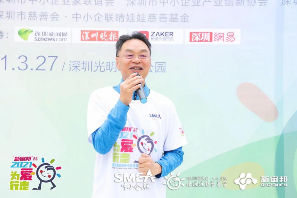 第三屆“為愛行走”活動的愛心冠名企業(yè)-中小企聯(lián)副會長、深圳新宙邦科技股份有限公司董事長覃九三向中小企聯(lián)晴娃娃慈善基金捐款15萬元人民幣。