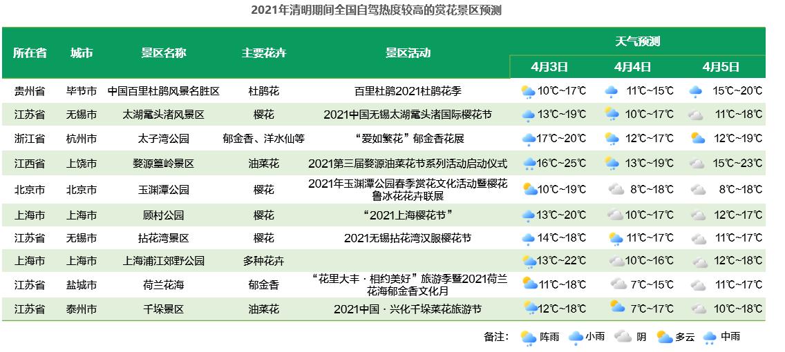 部分熱門(mén)賞花景區(qū)熱度同比2019年清明預(yù)計(jì)上升約75%