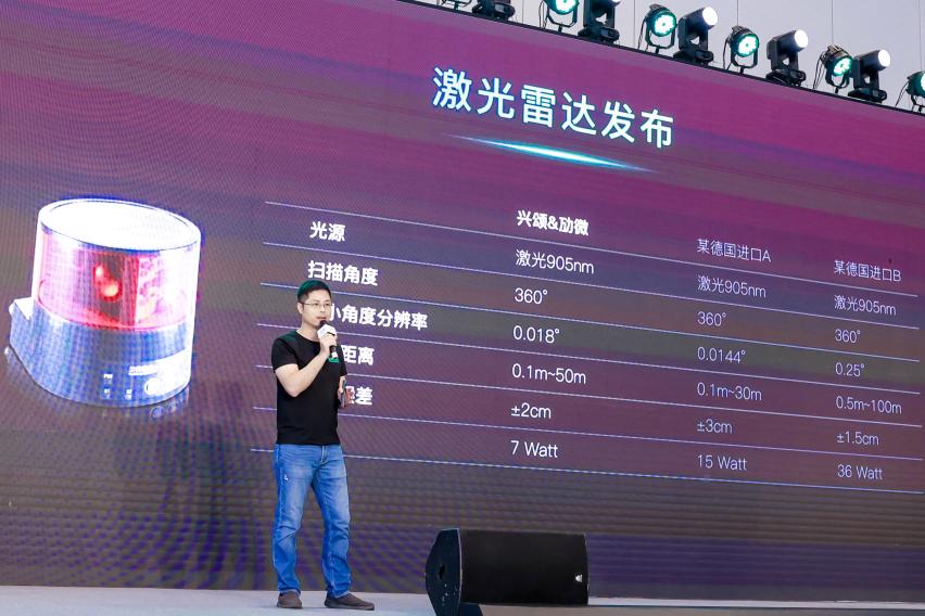 接下來進入到發(fā)布會重磅內(nèi)容環(huán)節(jié),首先,勱微機器人CEO陳文成在會上宣布了勱微聯(lián)合興頌研發(fā)的激光雷達,這款激光雷達具有優(yōu)異的性能,即使在5%反射率的環(huán)境下,依然可以有50m的檢測距離,同時還具備非常穩(wěn)定的持續(xù)輸出,且精度保持在±2mm,較同行的±10mm更精準。