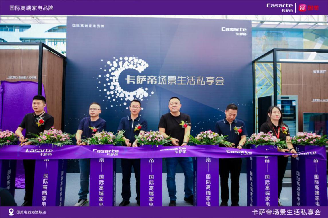 隨后,國(guó)美零售深圳區(qū)域總經(jīng)理王炎、海爾智家深圳分公司總經(jīng)理王曉強(qiáng)、國(guó)美零售深圳區(qū)域采購總監(jiān)羅彧、海爾智家深圳分公司全網(wǎng)總監(jiān)夏英勇、海爾智家深圳分公司營(yíng)銷總監(jiān)孫勃和國(guó)美電器港澳城店店長(zhǎng)付永紅上臺(tái),共同完成了卡薩帝場(chǎng)景生活私享會(huì)的啟動(dòng)儀式。