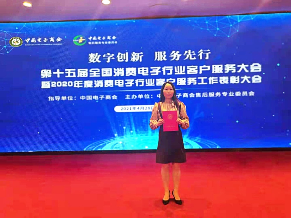 在經(jīng)過網(wǎng)友、行業(yè)專家、主管部門等綜合評價后,國美管家獲評“2020年度消費電子行業(yè)客戶服務滿意單位”。國美管家上海恒遠客服經(jīng)理錢云憑借近10年的專業(yè)服務和敬業(yè)精神,榮獲了“2020年度消費電子行業(yè)客戶服務優(yōu)秀工作者”。