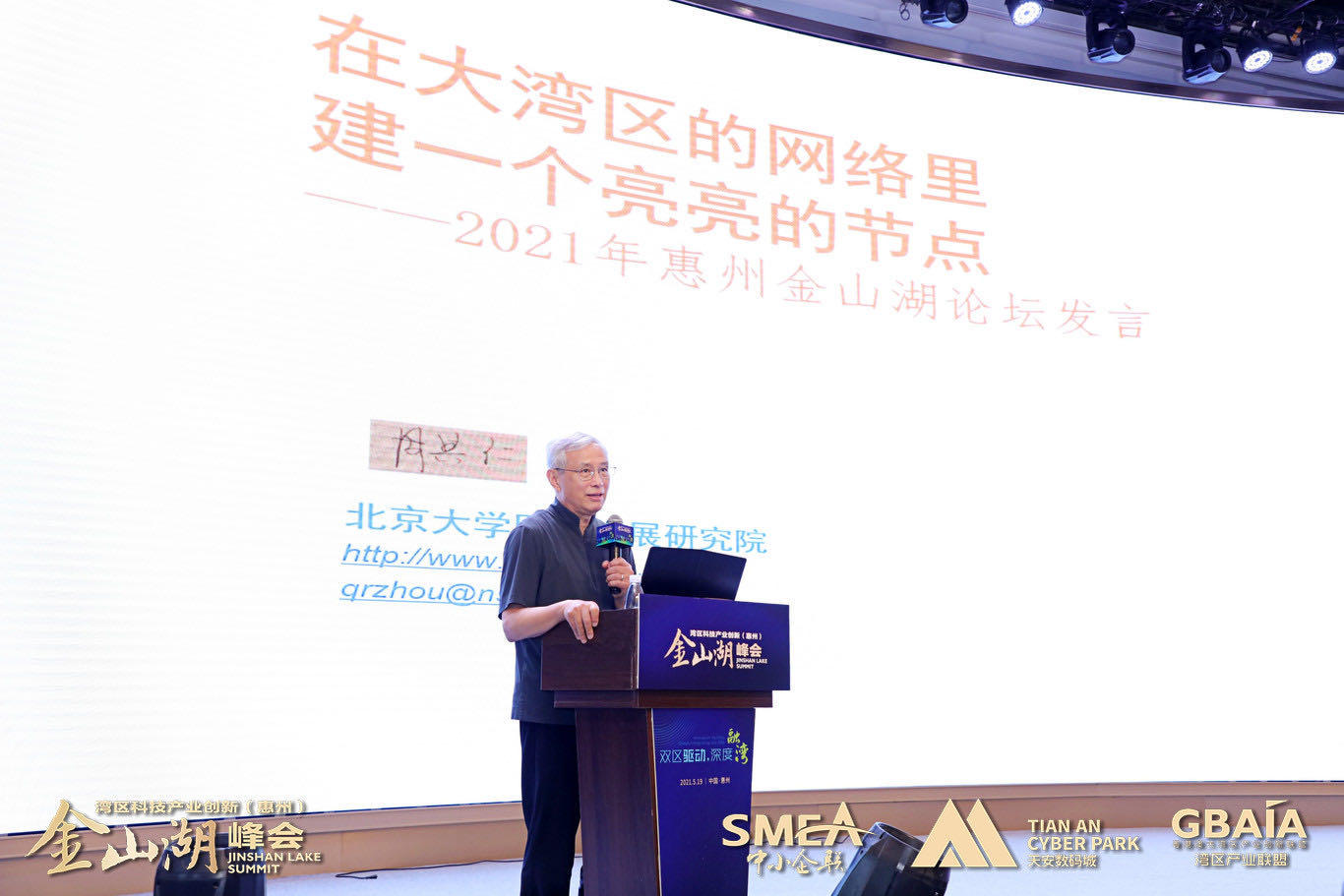 北京大學博雅資深講座教授周其仁進行題為《在大灣區(qū)的網(wǎng)絡(luò)里建一個亮亮的節(jié)點》的主旨演講
