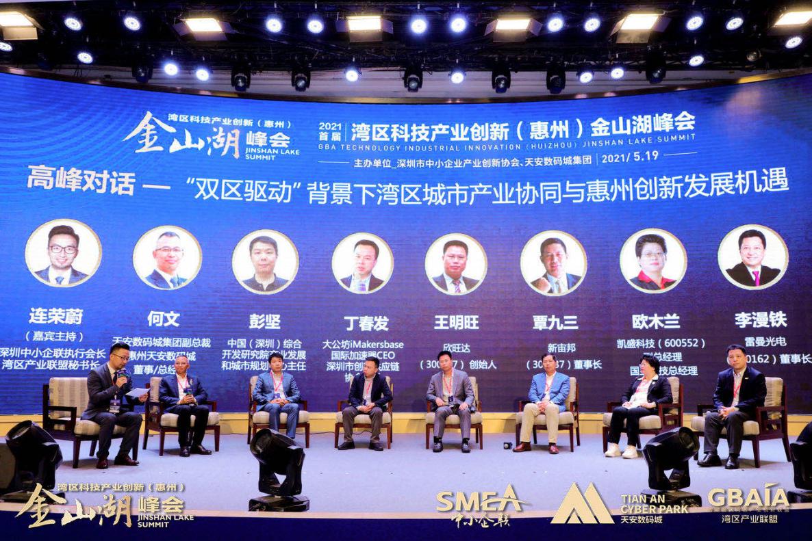 圓桌論壇環(huán)節(jié),特邀天安數(shù)碼城集團(tuán)副總裁、惠州天安數(shù)碼城董事/總經(jīng)理何文,中國(深圳)綜合開發(fā)研究院產(chǎn)業(yè)發(fā)展和城市規(guī)劃中心主任彭堅(jiān),大公坊iMakerbase國際加速器CEO、深圳市創(chuàng)客供應(yīng)鏈協(xié)會(huì)會(huì)長丁春發(fā),欣旺達(dá)(300207)創(chuàng)始人王明旺,新宙邦(300037)董事長覃九三,凱盛科技(600552)副總經(jīng)理、國顯科技總經(jīng)理歐木蘭,雷曼光電(300162)董事長李漫鐵,由深圳中小企聯(lián)執(zhí)行會(huì)長、灣區(qū)產(chǎn)業(yè)聯(lián)盟秘書長連榮蔚主持,圍繞《“雙區(qū)驅(qū)動(dòng)”背景下灣區(qū)城市產(chǎn)業(yè)協(xié)同與惠州創(chuàng)新發(fā)展機(jī)遇》主題展開討論。