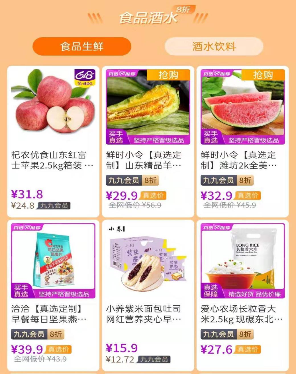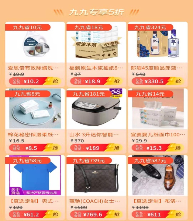 2020年11月,九九會員正式推出,主打“超值會員價”權益,突出“首單回本、再買即賺”會員心智,提供全品類近萬款會員價商品和周到的服務。自上線以來“九九會員”不斷推出新功能、新玩法,豐富會員權益。截至2021年5月,九九會員月卡會員已突破300萬人,年卡會員近50萬人。