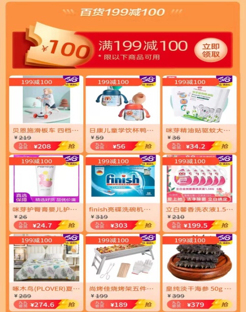 進入“真快樂”APP自營百貨618大促“滿199減100”專區(qū),食品酒水、家居日用、美妝個護、母嬰玩具四大品類多款商品超級劃算,多維度滿足大家的需求。