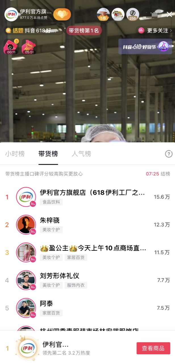 讀特客戶端·深圳新聞網(wǎng)2021年6月19日訊(記者 常軍平 ) 穩(wěn)居榜首!截至6月18日24點(diǎn),抖音618好物節(jié)落下帷幕,伊利品牌斬獲行業(yè)品牌直播銷(xiāo)售額、店鋪銷(xiāo)量雙料第一,成為抖音618好物節(jié)食品飲料行業(yè)諸多商家中當(dāng)之無(wú)愧的冠軍。這是伊利入局抖音興趣電商以來(lái)的第一個(gè)大促,就多次刷新紀(jì)錄登上行業(yè)單日品牌自播榜冠軍,成為618期間帶貨主播總榜TOP5中唯一上榜的品牌商家。
