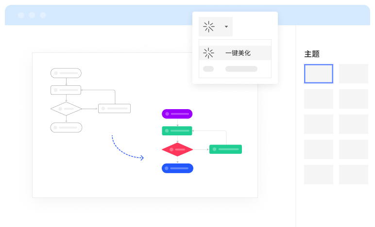 為了賦能繪圖效率,億圖圖示11.0版本還新增了“一鍵美化”功能,進(jìn)一步提升產(chǎn)品的易用性,真正做到“把簡(jiǎn)單留給用戶,把復(fù)雜留給自己”。