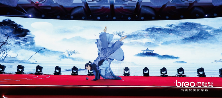 在晚會(huì)上,倍輕松邀請(qǐng)了風(fēng)暴舞者羅昱文表演中國古典舞《問月》?!拔ㄔ府?dāng)歌對(duì)酒時(shí),月光長照金樽里。”這支舞蹈傳遞出中國東方美學(xué)和倍輕松的品牌哲學(xué)如出一轍的相似。舞者用古典神韻和舞姿將“與月相期邈云漢”的浪漫情懷表達(dá)的淋漓盡致。詩與酒,樂與舞,醉人心。
