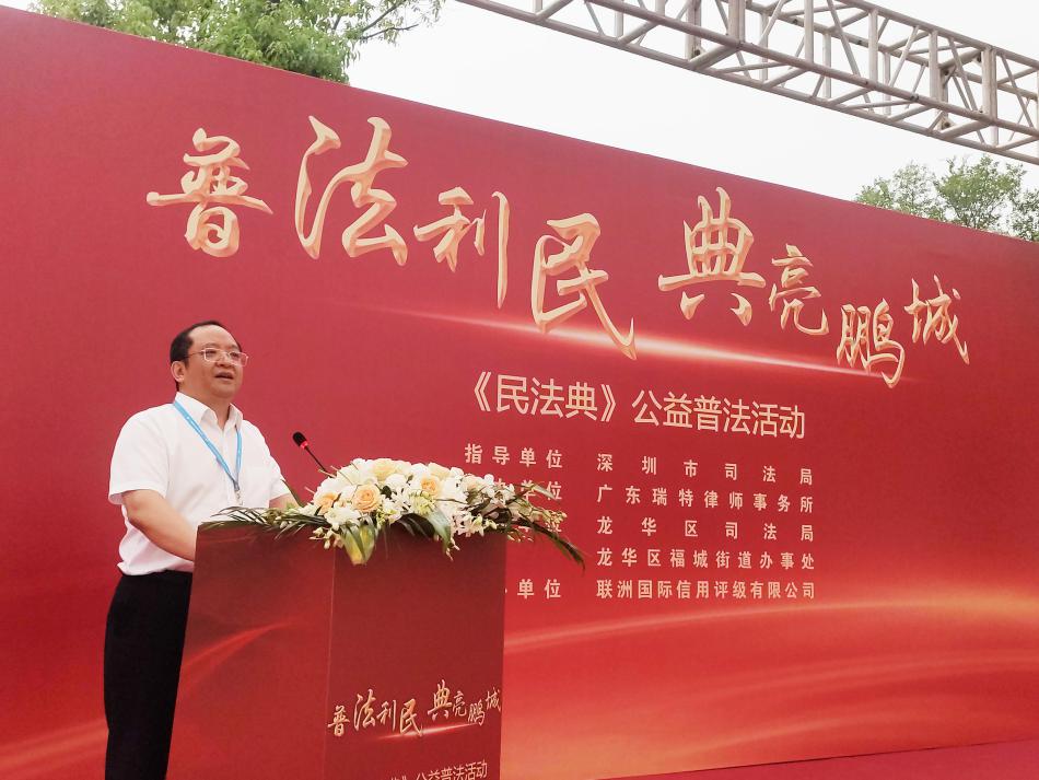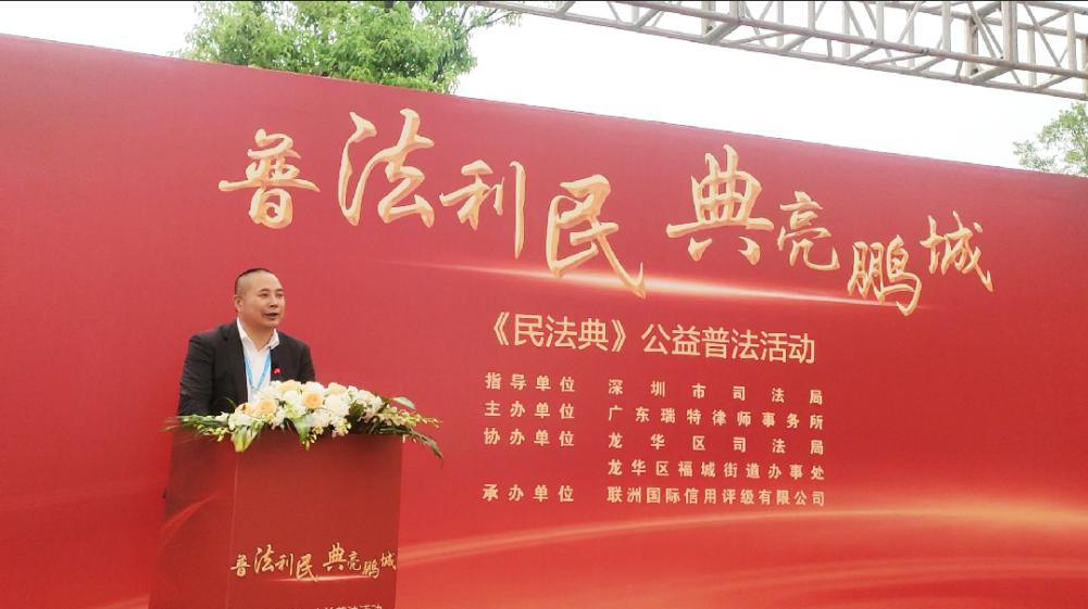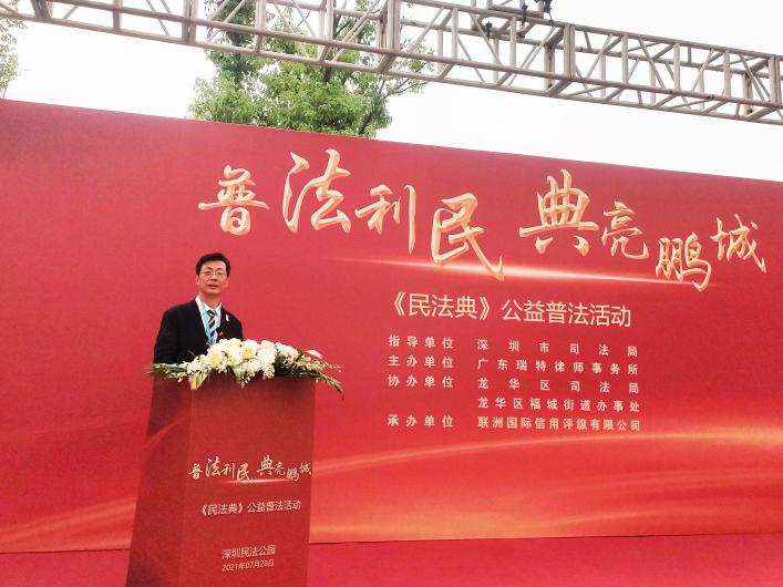 讀特客戶端·深圳新聞網(wǎng)2021年7月29日訊 (記者 常軍平) 昨日,由深圳市司法局指導(dǎo)、廣東瑞特律師事務(wù)所主辦、龍華區(qū)司法局、龍華區(qū)福城街道辦事處、深圳潮青會協(xié)辦、聯(lián)洲國際信用評級有限公司承辦的“普法利民,典亮鵬城”《民法典》公益普法活動在龍華舉行。