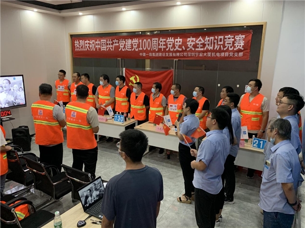 讀特客戶端·深圳新聞網(wǎng)2021年7月30日訊 同心筑夢,百年芳華,為扎實(shí)推進(jìn)黨史學(xué)習(xí)教育走深走實(shí),創(chuàng)新黨史知識學(xué)習(xí)方法,濃厚學(xué)習(xí)氛圍,增強(qiáng)學(xué)習(xí)興趣,近日,中建一局集團(tuán)建設(shè)發(fā)展有限公司深圳宇宏大廈機(jī)電項(xiàng)目黨支部舉辦以慶祝中國共產(chǎn)黨建黨100周年“學(xué)黨史、守初心、保安全、促發(fā)展”為主題的黨史、安全知識競賽。此次活動參賽代表隊(duì)是由項(xiàng)目廣大工友組成“忠黨隊(duì)”、“愛國隊(duì)”、“為民隊(duì)”、“筑夢隊(duì)”,共計(jì)50余人參加了本次活動。