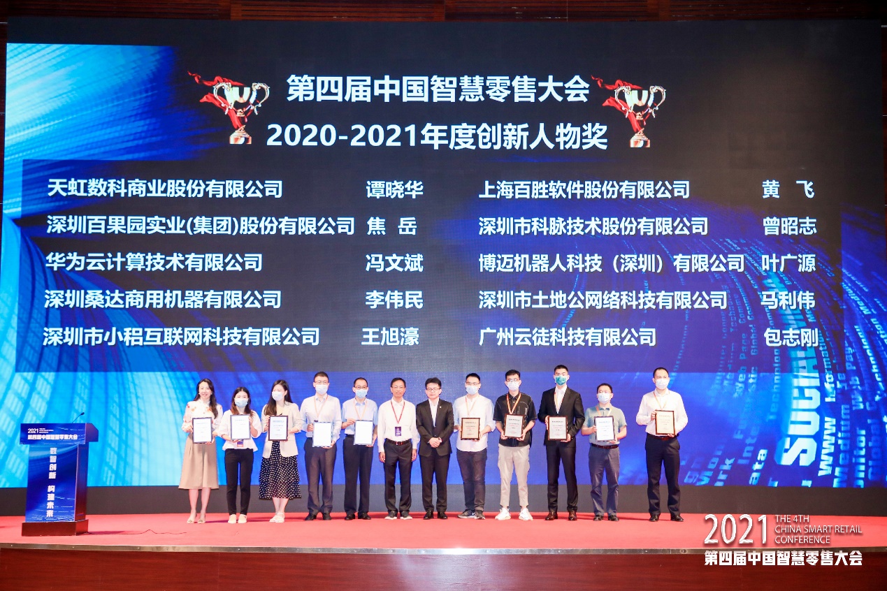 大會(huì)開(kāi)幕式上頒發(fā)“2020-2021年度智慧零售系列大獎(jiǎng)”,大會(huì)組委會(huì)從行業(yè)新技術(shù)應(yīng)用創(chuàng)新;經(jīng)營(yíng)、商業(yè)、組織、管理、服務(wù)等模式創(chuàng)新;全渠道、全產(chǎn)業(yè)鏈、全生產(chǎn)要素賦能等生態(tài)創(chuàng)新;領(lǐng)軍者推動(dòng)智慧零售創(chuàng)新發(fā)展等四個(gè)維度,共頒發(fā):新技術(shù)應(yīng)用創(chuàng)新獎(jiǎng)、模式創(chuàng)新獎(jiǎng)、生態(tài)創(chuàng)新獎(jiǎng)、創(chuàng)新人物獎(jiǎng)四大獎(jiǎng)項(xiàng)。華潤(rùn)萬(wàn)家、靈智數(shù)科、有贊、樂(lè)信等企業(yè)獲此榮譽(yù),天虹股份譚曉華、百果園焦岳等人獲得創(chuàng)新人物獎(jiǎng)。