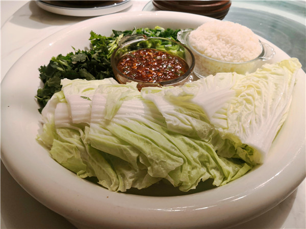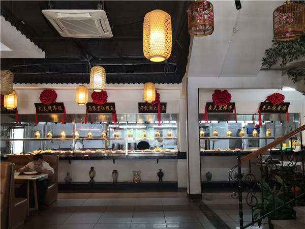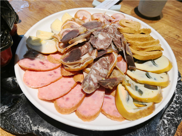 尤其扎眼的,正對(duì)大門(mén)的明廚亮灶上的幾塊牌匾,一下子就勾起人的食欲:老式熏豬手、手工燒老雞、烏蘇里江鰉魚(yú)、興凱湖大白魚(yú)、查干湖胖頭魚(yú)、火夫灶羊腿。這些都是地道的東北味??!據(jù)介紹,老板湯長(zhǎng)明是黑龍江“龍菜”系傳承領(lǐng)軍人物,祖孫四代傳承東北菜廚藝,現(xiàn)在關(guān)東大院餐飲集團(tuán)董事長(zhǎng)。當(dāng)然,許多大家耳熟能詳?shù)拇蟊姴艘矐?yīng)有盡有,如:殺豬菜、小雞燉蘑菇、得莫利燉魚(yú)、大鵝燉寬粉、黑皮肘子、酸菜粉、地三鮮、東北鹵水點(diǎn)豆腐、金湯遼參、黃魚(yú)燒土豆、紅燒肉黃金勾......看得人口水直冒。加之,整個(gè)門(mén)店的布局也十分特別,一樓明廚亮灶之外,主要是大堂散座,周邊還有不少的書(shū)籍、酒架;二樓主要是包間,簡(jiǎn)潔明亮??梢哉f(shuō),在此可以感受到一股濃濃的關(guān)東風(fēng)情。