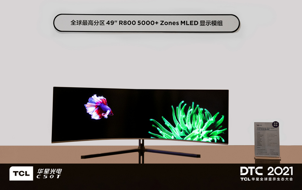針對(duì) DTC2021五款全球首發(fā)的產(chǎn)品與技術(shù), TCL華星光電副總裁、顯示技術(shù)創(chuàng)新中心總經(jīng)理張?chǎng)巫髁嗽敿?xì)介紹。49" R8005000+Zones MLED顯示模組,65"8K噴墨打印OLED,8"無(wú)偏光極小半徑360°折疊屏,125"玻璃基透明直顯MLED,14"噴墨打印OLED卷軸屏,5款產(chǎn)品的隆重亮相瞬間成為了全場(chǎng)的焦點(diǎn),其多樣的產(chǎn)品尺寸,豐富的產(chǎn)品形態(tài),全方位地讓現(xiàn)場(chǎng)來(lái)賓及媒體,充分了解到TCL華星在屏顯技術(shù)上的研發(fā)底蘊(yùn)與創(chuàng)新實(shí)力。