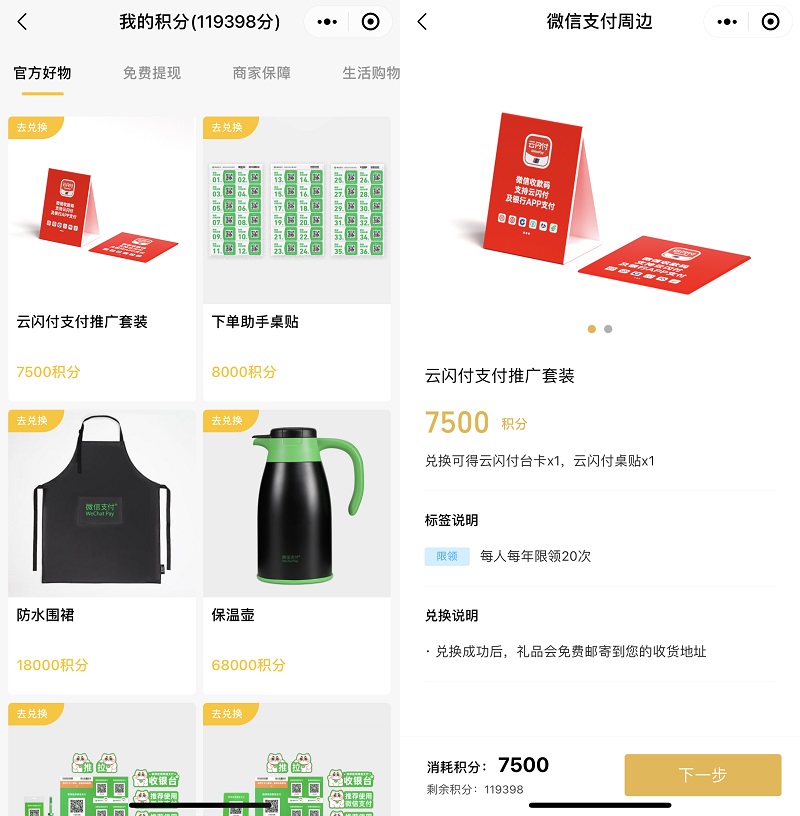 記者了解到,線下門店出現(xiàn)的宣傳物料是微信支付積極落實(shí)互聯(lián)互通的又一舉措,目前微信支付與銀聯(lián)云閃付 App已實(shí)現(xiàn)線下所有條碼的互認(rèn)互掃,用戶可通過云閃付App直接掃描微信支付各類收款二維碼并完成付款。商家可在“收款小賬本”微信小程序,進(jìn)入“我的積分”頁面,使用積分兌換“云閃付支付推廣套裝”,此外購買“微信官方收款碼”也可同時(shí)獲取云閃付相關(guān)物料。