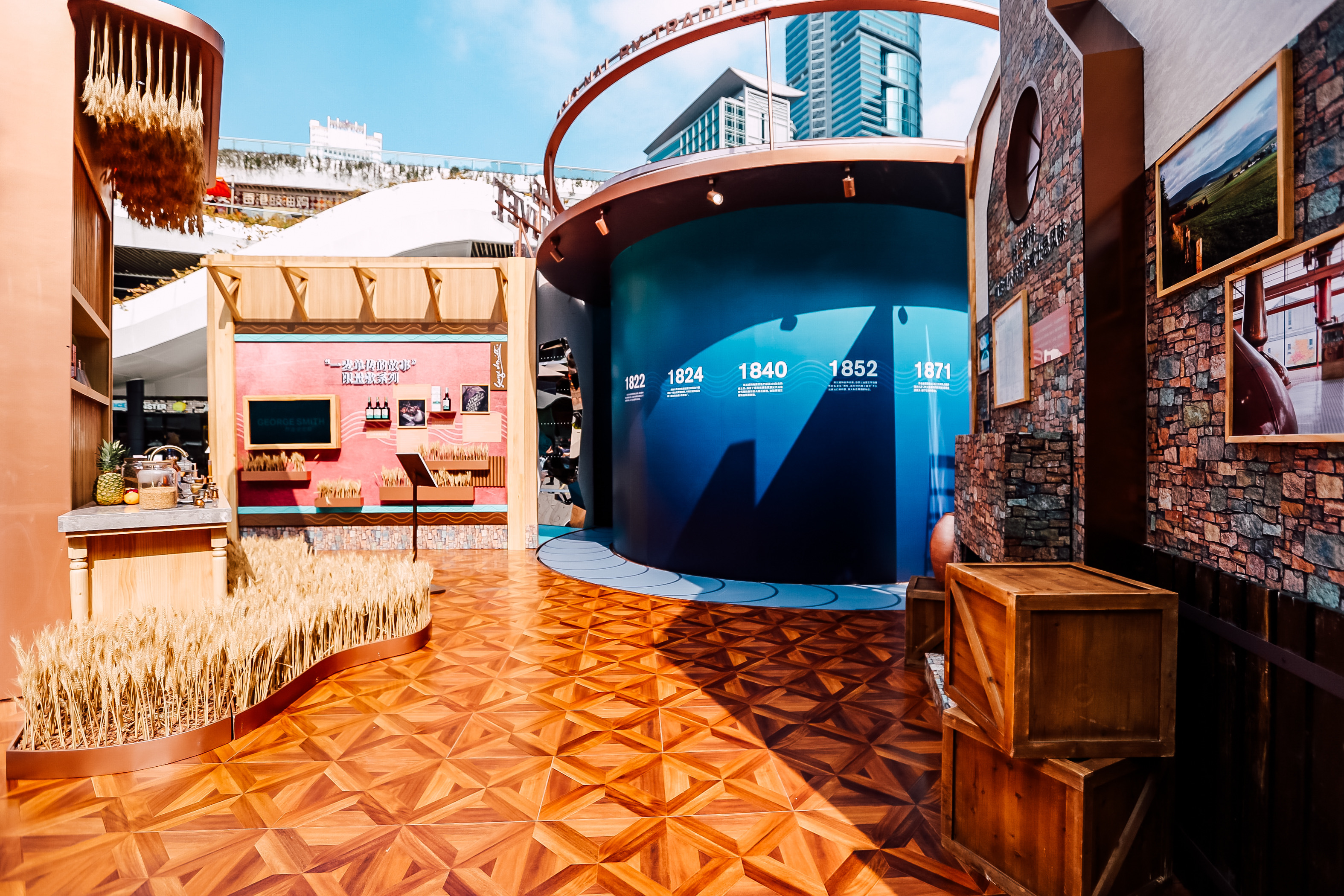 時(shí)光穿梭酒廠(chǎng)入口以“破墻而出”的投影裝置為來(lái)賓開(kāi)啟時(shí)光隧道的大門(mén),極具震撼力的視覺(jué)畫(huà)面展現(xiàn)格蘭威特打破傳統(tǒng)、大膽顛覆的創(chuàng)新精神,一段奇妙的旅程便由此開(kāi)啟。踏上傳送帶,來(lái)賓首先抵達(dá)還原了一間復(fù)古簡(jiǎn)陋的茅草屋的“創(chuàng)始人蒸餾室”,作為格蘭威特的發(fā)源地,品牌創(chuàng)始人喬治·史密斯先生百年前便在此秘密蒸餾了首批格蘭威特單一麥芽威士忌。古樸的木質(zhì)操作臺(tái)上擺放著調(diào)配實(shí)驗(yàn)中所需的各種儀器,灰磚墻面上展示著酒廠(chǎng)各時(shí)期的歷史照片,列架上則陳列了向喬治 ·史密斯先生致敬的創(chuàng)始人甄選單一麥芽威士忌,帶領(lǐng)威士忌愛(ài)好者們跨越時(shí)空回顧專(zhuān)屬格蘭威特的傳奇歷史和傳承。值得一提的是,繼12年秘密蒸餾發(fā)布后,格蘭威特“一麥單傳的故事”限量系列中的第二款全新杰作——12年創(chuàng)始佳釀限量版也在此處正式亮相。采用“初填雙橡木桶威士忌”制作理念,這款佳釀以其特有的宜人果香為原始的斯佩塞威士忌賦予了全新風(fēng)味。格蘭威特以此紀(jì)念喬治?史密斯先生成為當(dāng)?shù)芈氏全@得威士忌制作許可的蒸餾師的傳奇歷史,向其敢為人先的勇氣致敬。
