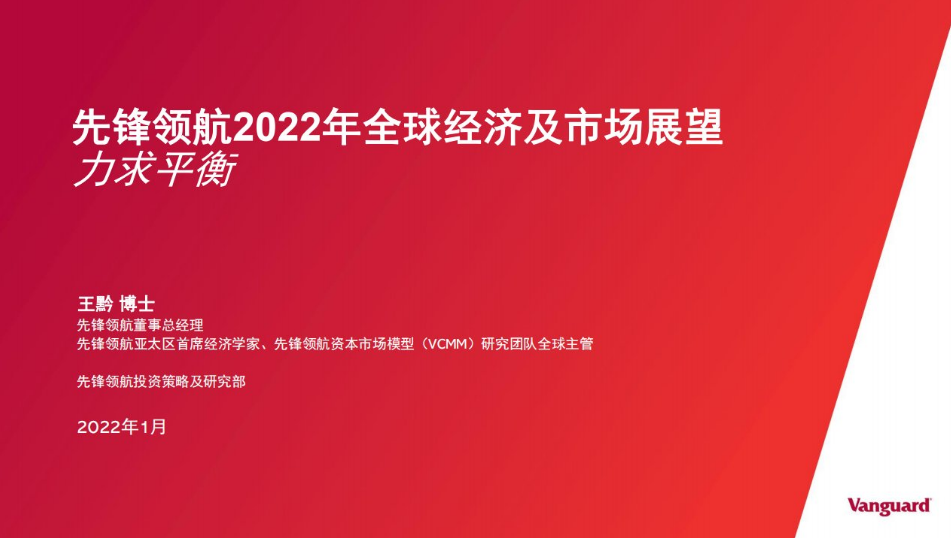 讀特客戶端·深圳新聞網(wǎng)2022年1月26日訊(記者 張俊達)近日, Vanguard先鋒領(lǐng)航于萬得平臺舉行線上交流會,正式發(fā)布《先鋒領(lǐng)航2022年全球經(jīng)濟及市場展望:力求平衡》。會上,先鋒領(lǐng)航投資策略及研究部亞太區(qū)首席經(jīng)濟學家、先鋒領(lǐng)航資本市場模型(VCMM)研究團隊全球主管王黔博士就展望報告進行了主題分享并圍繞相關(guān)話題與參會嘉賓展開了深入探討。