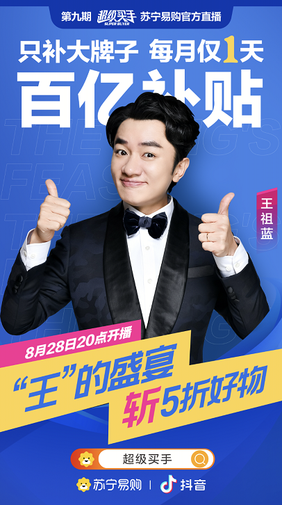 ?828王祖藍現(xiàn)身蘇寧易購抖音直播間,挑戰(zhàn)帶貨紀錄