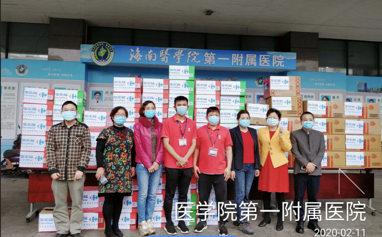 海口蘇寧家樂福于2月11日上午,向海南醫(yī)學(xué)院第一附屬醫(yī)院捐贈(zèng)了一批生活方便食品,涵蓋速食面、牛奶、八寶粥、功能飲料等。