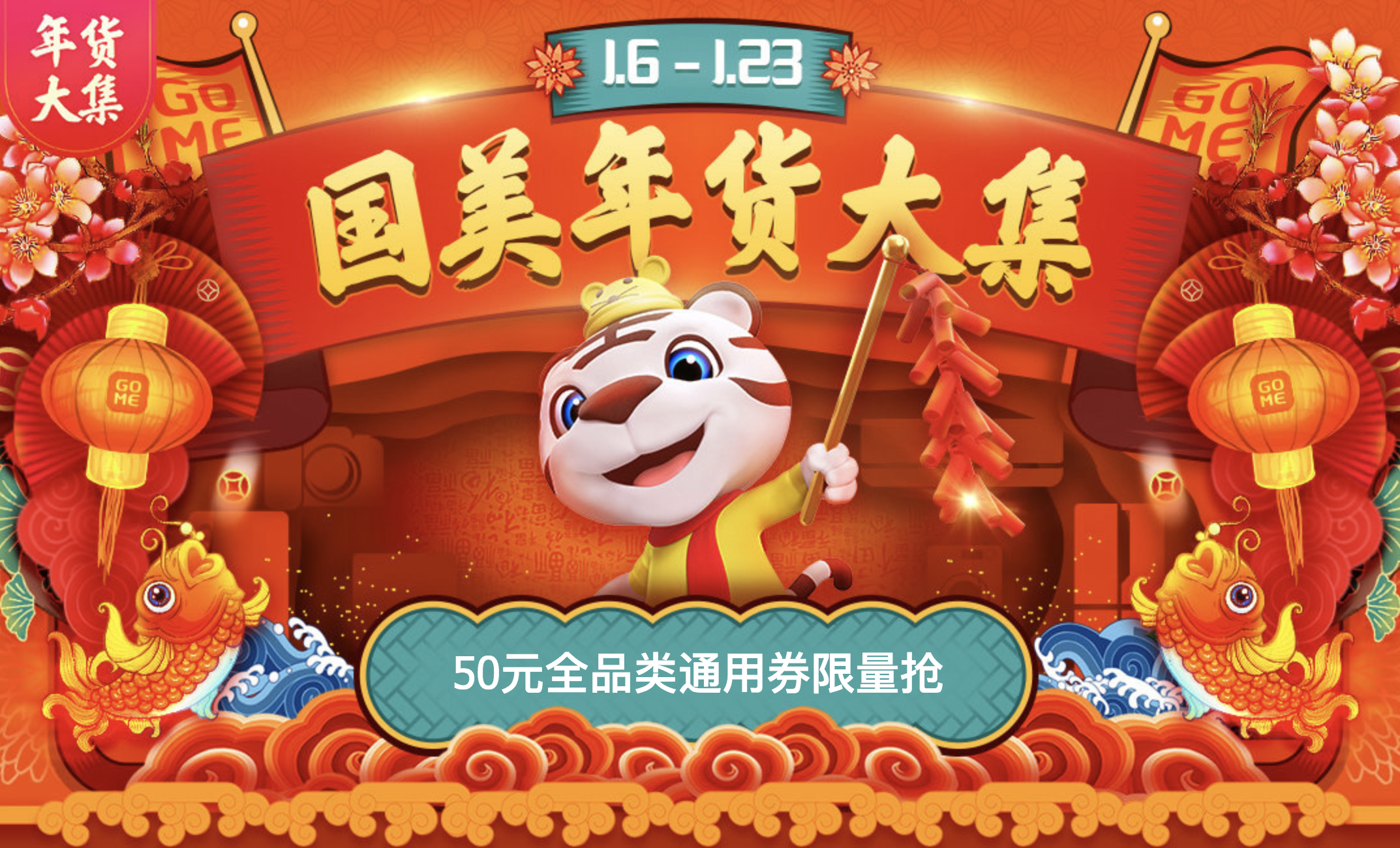 國美年貨大集開張門店紅包墻寄托兒時思念