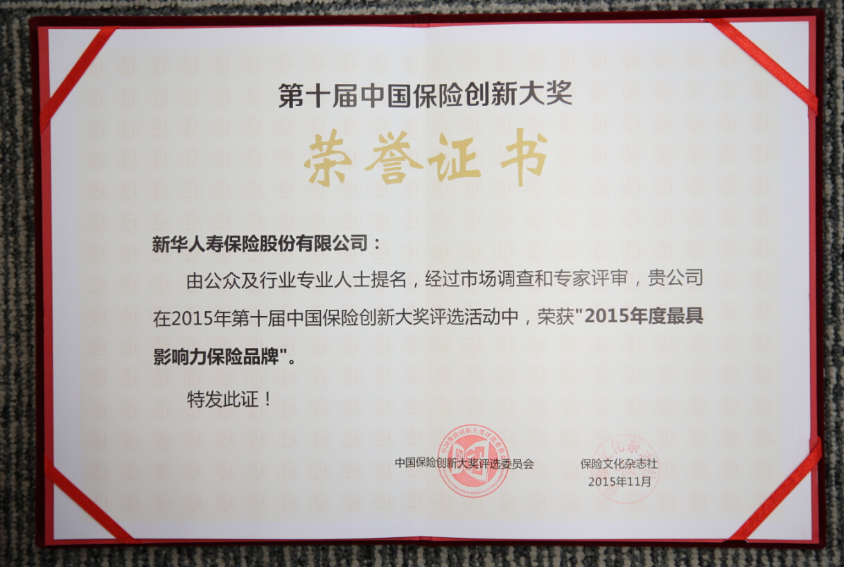 2015年度最具影響力保險(xiǎn)品牌