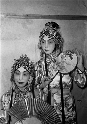他10歲學(xué)藝,13歲正式登臺(tái)演出《玉堂春》、《四郎探母》等劇目,彼時(shí)的中國(guó)正值抗戰(zhàn)的危難時(shí)期,風(fēng)雨飄搖,他的父親為彰顯民族氣節(jié),正蓄須明志,暫別舞臺(tái)。我們?cè)诹鱾飨聛?lái)的文獻(xiàn)照片中,只能看見(jiàn)一個(gè)面容清秀的少年,安靜地立于他名聲浩蕩的父親的身后,身體微微前傾——除此之外,我們沒(méi)法更多地捕捉到這對(duì)父子之間情感上的細(xì)節(jié),那黑白的畫(huà)面,靜穆而有意地拒絕向后人傳遞出更多的信息。