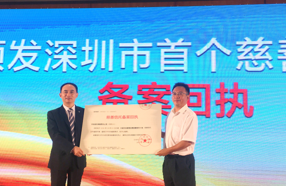 9月5日,在深圳市舉辦的“中華慈善日”主題活動(dòng)上,中國(guó)平安作為唯一一家企業(yè),獲頒首個(gè)慈善信托備案證書(shū)。