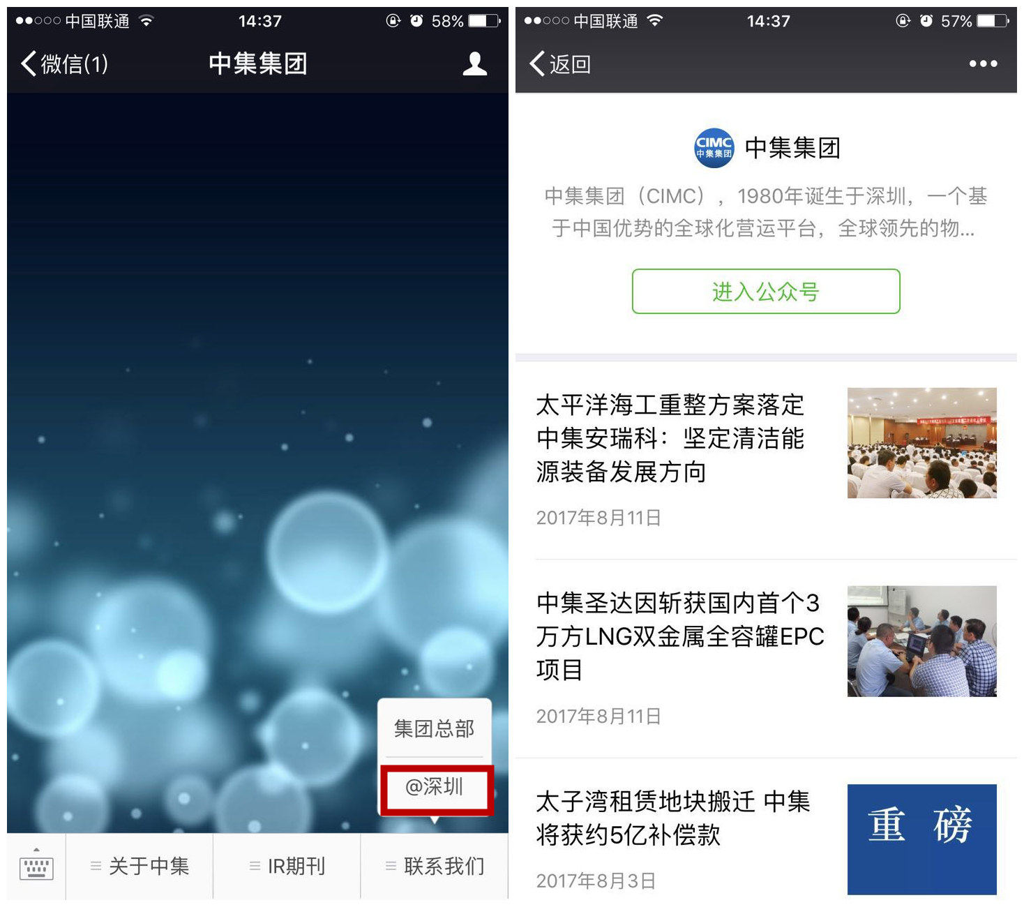 中集集團(tuán)官方微信入駐城市級(jí)自媒體平臺(tái)“@深圳”