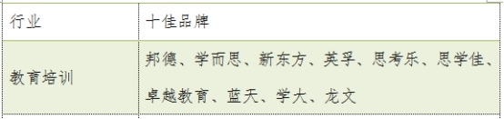 邦德、學而思、新東方、英孚、思考樂、思學佳、卓越教育、藍天、學大、龍文等十家單位榮獲教育培訓行業(yè)十佳品牌。
