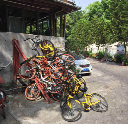 共享單車“堆尸”安托山公園?市交委將啟動銷毀程序