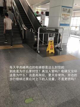 在7月2日的這條投訴中,有市民還指出了電梯停運時間的不合理,稱木棉灣站的地鐵每逢工作日高峰期就“暫停使用”,到了平峰期就正常運行。這也引起了其他一些乘客的質(zhì)疑。家住木棉灣站附近的李先生說:“非高峰時段電梯就能用,說明電梯本身沒問題,那為什么不開放給人多的時候用呢?”市民張先生則認(rèn)為,地鐵方面可能是為了降低維護(hù)成本,“怕人多踩壞了,要花錢花時間修唄”。但也有市民猜測電梯停運或有安全方面的考慮。“畢竟不會無緣無故就停了吧,可能是考慮到高峰客流量多,所以關(guān)掉不用的。”杜女士表示,可以接受因為安全問題而采取的停運措施,“走走樓梯也沒有什么。