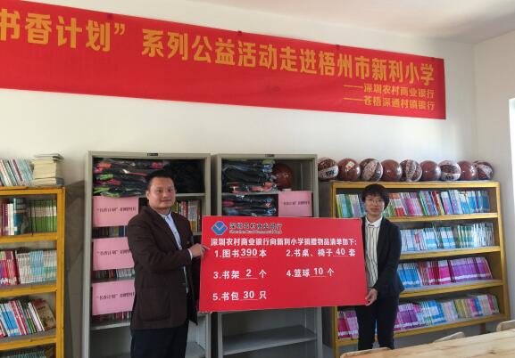 2017年,由深圳農(nóng)商行發(fā)起的“信用卡公益計(jì)劃·書(shū)香圖書(shū)室”捐贈(zèng)活動(dòng),深入走進(jìn)廣西壯族自治區(qū)的偏遠(yuǎn)山區(qū),為當(dāng)?shù)剌^為貧困的扶典小學(xué)、新利小學(xué)、林旺小學(xué)和育才小學(xué)帶來(lái)溫暖和鼓勵(lì)。本次活動(dòng)共捐贈(zèng)各類圖書(shū)1899冊(cè)、文體用品130套、書(shū)包590個(gè)、書(shū)桌書(shū)架椅子42套,有效地幫助這四所小學(xué)建設(shè)充實(shí)圖書(shū)室,為孩子們創(chuàng)造良好的閱讀環(huán)境,讓更多孩子在閱讀中滋養(yǎng)向上生長(zhǎng)的力量。