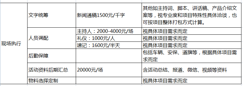 3、后勤保障:舉辦大型活動(dòng)時(shí),為了保障嘉賓安全,渲染現(xiàn)場(chǎng)氣氛,通常需要有一系列的車輛、安保、道路指引旗幟等工作。深圳新聞網(wǎng)擁有豐富的大型現(xiàn)場(chǎng)活動(dòng)把控經(jīng)驗(yàn),特別是與相關(guān)部門,如城管、公安、交通等主管職能機(jī)構(gòu)溝通、協(xié)調(diào)、策劃的能力,保障活動(dòng)安全,萬無一失。具體費(fèi)用需要依據(jù)項(xiàng)目的規(guī)模、時(shí)長(zhǎng)、等級(jí)來具體商議。