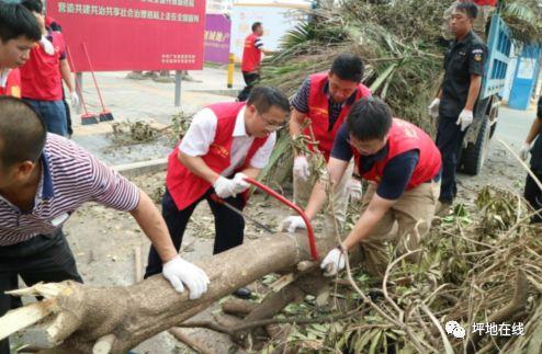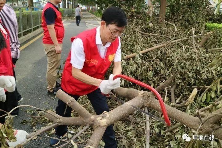 臺(tái)風(fēng)過(guò)后,9月17日,坪地街道黨工委書記曾憲旺就向全街道黨員發(fā)出號(hào)召:希望我們坪地的黨員干部要向抗擊臺(tái)風(fēng)時(shí)一樣,在災(zāi)后恢復(fù)的工作中沖在前面,叫響“看我的、跟我來(lái)”。3天來(lái),坪地黨員干部保持了戰(zhàn)時(shí)狀態(tài),災(zāi)后第一天就基本恢復(fù)了轄區(qū)供水、供電和主要道路的交通,9月20日的主題黨日活動(dòng)中,清潔主要干道35條,清理路面12公里,砍斷無(wú)移植價(jià)值樹木16棵,清理樹枝58車次。街道各社區(qū)市容環(huán)境基本得到恢復(fù)。
