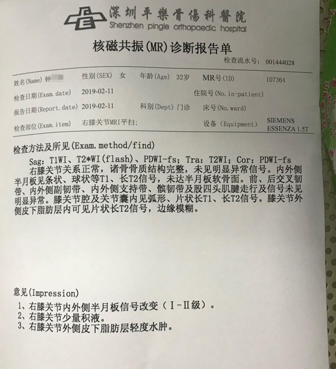 深圳新聞網(wǎng)2019年2月19日訊 2019年2月8日下午3時左右,春節(jié)氣氛濃厚,鐘女士在景田沃爾瑪超市購物時,被沃爾瑪工作人員拖著雙層取貨梯的鐵尖角撞傷右腿膝蓋外側(cè)。事發(fā)后,鐘女士疼痛難忍,無法站立,速至附近醫(yī)院就醫(yī),檢查結(jié)果顯示,右膝半月板二級損傷及膝關(guān)節(jié)積液水腫。