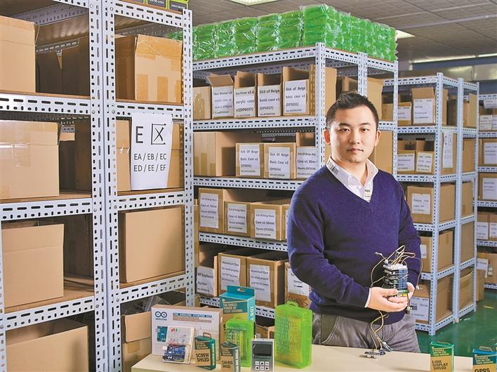 我在大學甚至更早的時候就深有體會——我有很多想法,但是缺乏必要的技術(shù)去把這個想法實現(xiàn)出來。我在國外的一個開源硬件論壇留言說我的體會,沒想到有那么多創(chuàng)客回饋說有同感,論壇上創(chuàng)客們的積極回應讓我看到了商機。我發(fā)現(xiàn),很多硬件模塊因為創(chuàng)客需要的量少,很多工廠不愿意生產(chǎn)。后來,我想到了在國際創(chuàng)客論壇發(fā)帖征集創(chuàng)客們的需求,再到國內(nèi)電子市場搜集硬件加工后發(fā)給創(chuàng)客的點子。于是,我便做起了開源硬件的生意。“為創(chuàng)客服務”,這是我創(chuàng)業(yè)的最初目標。