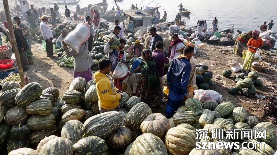 河岸上碼頭眾多,倚靠碼頭生存的批發(fā)市場延綿不絕,果蔬、蔗糖、染料、煙草、茶葉是這里的主要商品。李仁奇攝