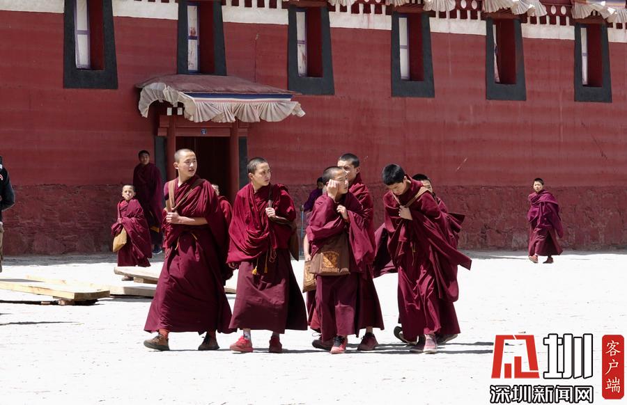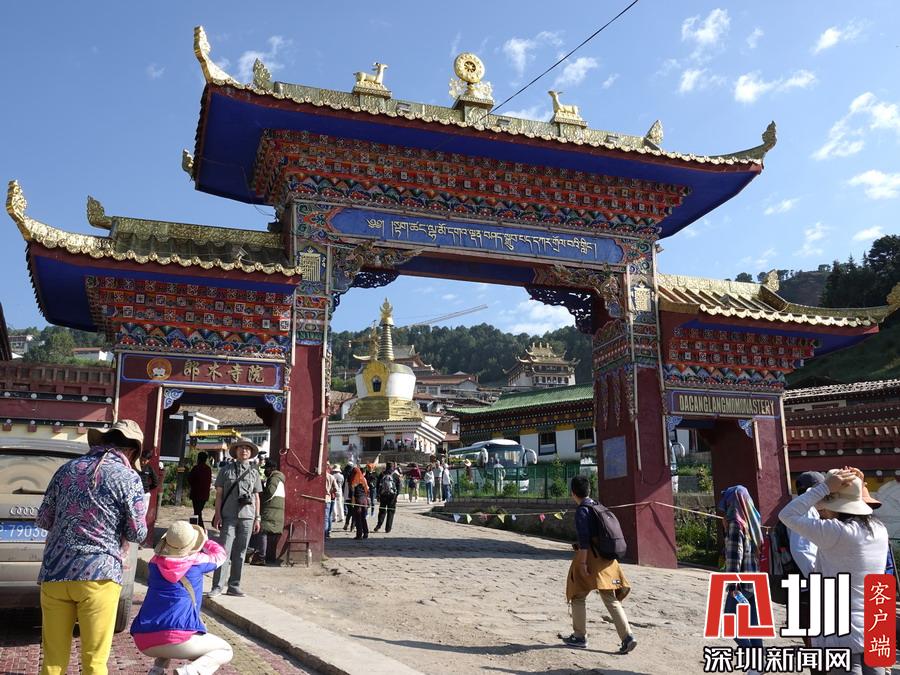 鎮(zhèn)內(nèi)的主要街道分屬兩省管轄。南北兩端,幾百米之內(nèi),有兩座壯觀宏大的寺院建筑群隔“江”(白龍江源流)相望,甘肅境內(nèi)是“賽赤寺”。四川境內(nèi)有“格爾底寺”。李仁奇攝