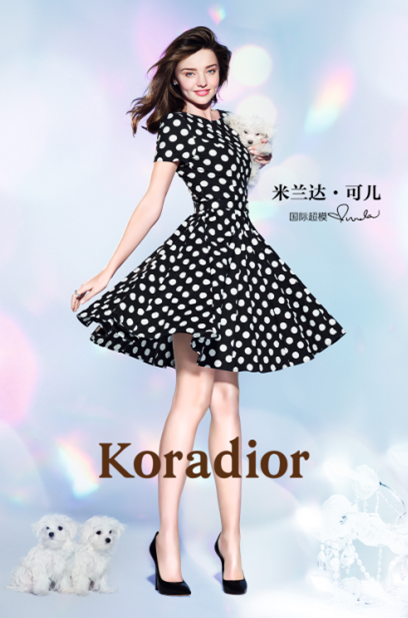 Koradior邀請國際超模米蘭達·可兒成為其形象代言人。春夏形象大片登陸深圳機場;