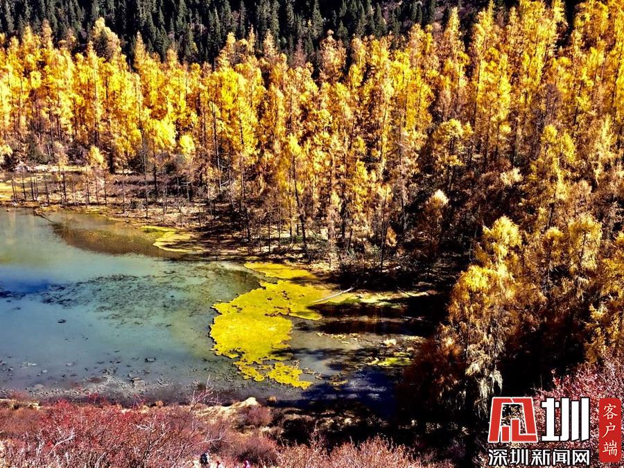 溝里有大片的落葉松、杜鵑和云杉林,雪山、海子、濕地、河流等景觀應有盡有,唯獨沒有公路,只能沿木棧道徒步游覽。李仁奇攝