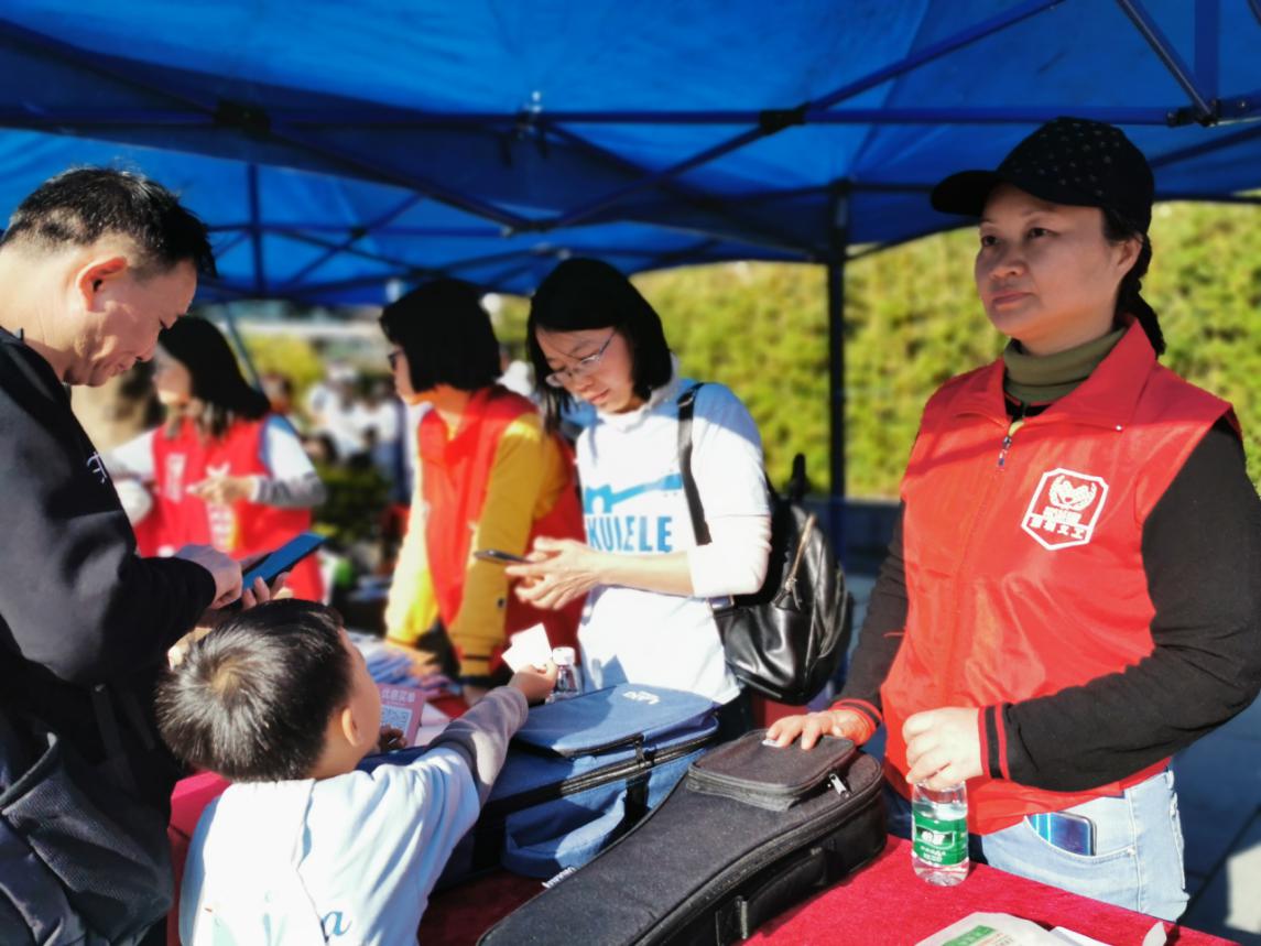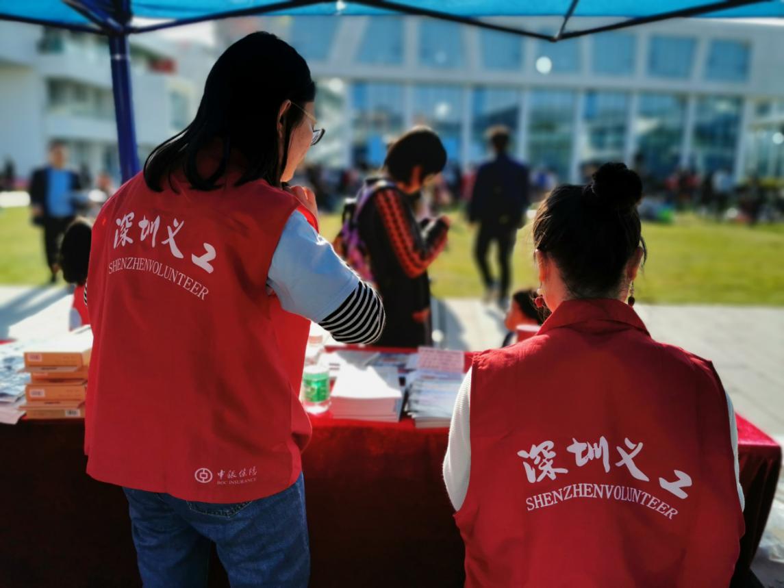 圖:南山區(qū)義工聯為參與活動市民解答指引