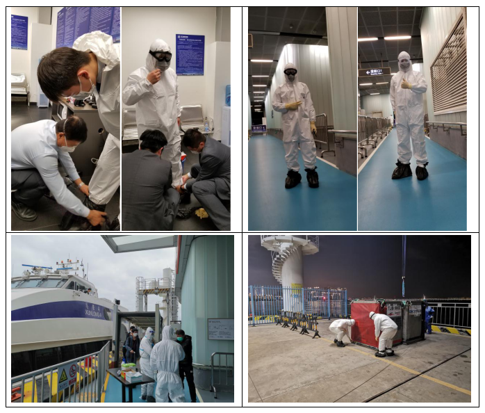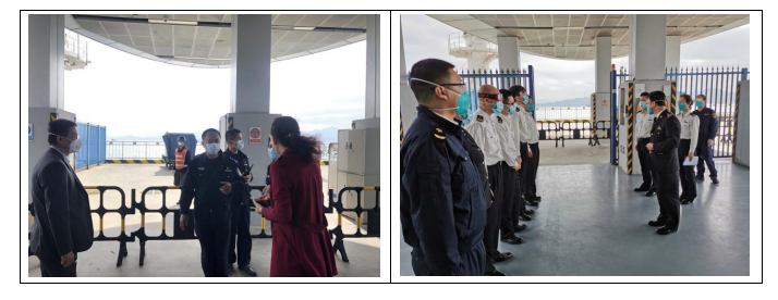 港口各級干部員工勇于擔(dān)當(dāng)、迎難而上,勠力同心、眾志成城,共同筑牢嚴(yán)防疫情輸入的堅(jiān)強(qiáng)防線,用實(shí)際行動(dòng)詮釋了“牢記使命勇?lián)?dāng)”。蛇口郵輪母港呂如福常務(wù)副總經(jīng)理與港口運(yùn)營中心林麗華總經(jīng)理連夜開會部署至深夜,第二天仍早早趕到現(xiàn)場與聯(lián)檢單位共同查勘旅客動(dòng)線;賴乙??偙O(jiān)接到航班通知后,放棄值班休息第一時(shí)間趕到現(xiàn)場布置各項(xiàng)保障任務(wù),并親自為一線員工穿戴防護(hù)用品;港口一線員工面對夜間加開航班旅客人數(shù)多且有發(fā)燒旅客的情況,毫不退縮、沖鋒在前,順利完成保障任務(wù),一直到深夜客船和旅客動(dòng)線消毒清場完畢才下班。