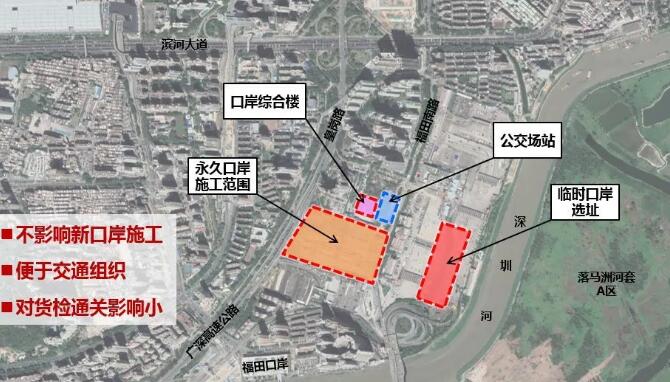 皇崗口岸重建是深圳落實(shí)“雙區(qū)驅(qū)動(dòng)”戰(zhàn)略和推動(dòng)深港科技創(chuàng)新合作區(qū)建設(shè)的重大工程項(xiàng)目,受到中央和省、市的高度重視,按照規(guī)劃方案重建分三步實(shí)施,首先,在貨檢區(qū)建設(shè)臨時(shí)旅檢場(chǎng)地,其次,拆除皇崗口岸旅檢片區(qū)老舊建筑,最后,建設(shè)新口岸。