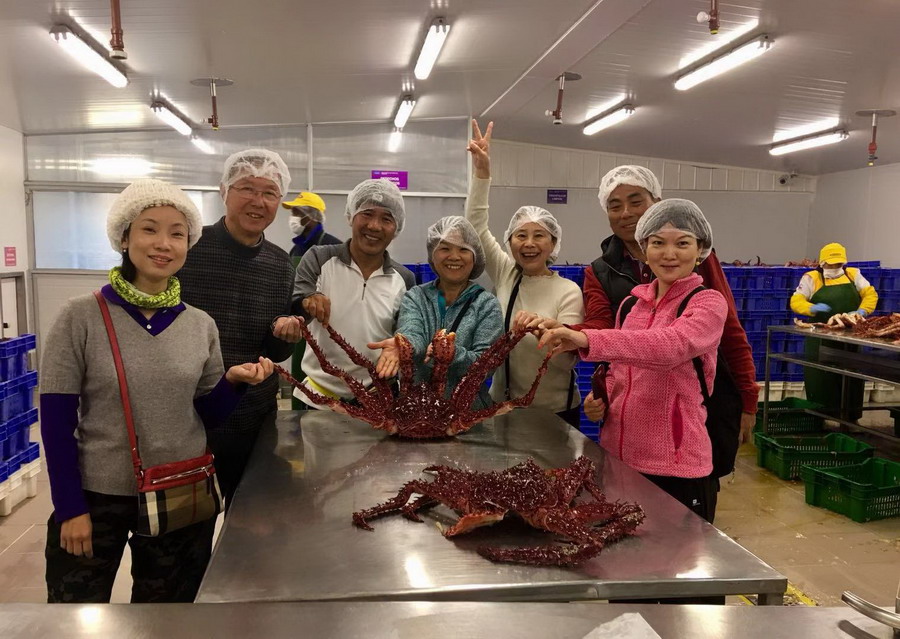 網(wǎng)友在蜘蛛蟹加工基地。湯有國(guó)攝