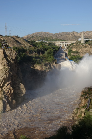 洮河黃河匯流處清濁分明的水面和電站排洪的壯觀景象具有獨特的觀賞價值。李仁奇攝