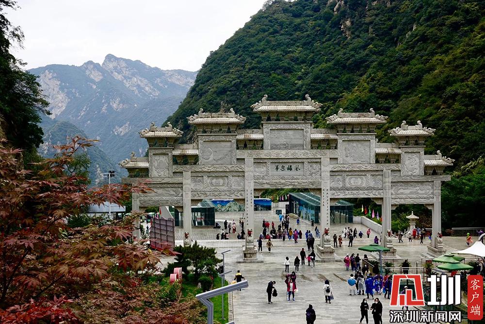 共有72個半懸空洞,道觀20余座,其中玉泉院、都龍廟、東道院、鎮(zhèn)岳宮被列為全國重點道教宮觀,有陳摶、郝大通、賀元希等著名的道教高人。排隊等待參觀的游客。李仁奇攝。